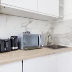 Ez a teljesen felszerelt konyhával, benne hűtővel, kenyérpirítóval és konyhai edényekkel ellátott apartman egy tökéletes hely a pihenésre az Élysées, Párizs VIII. E körzetben.